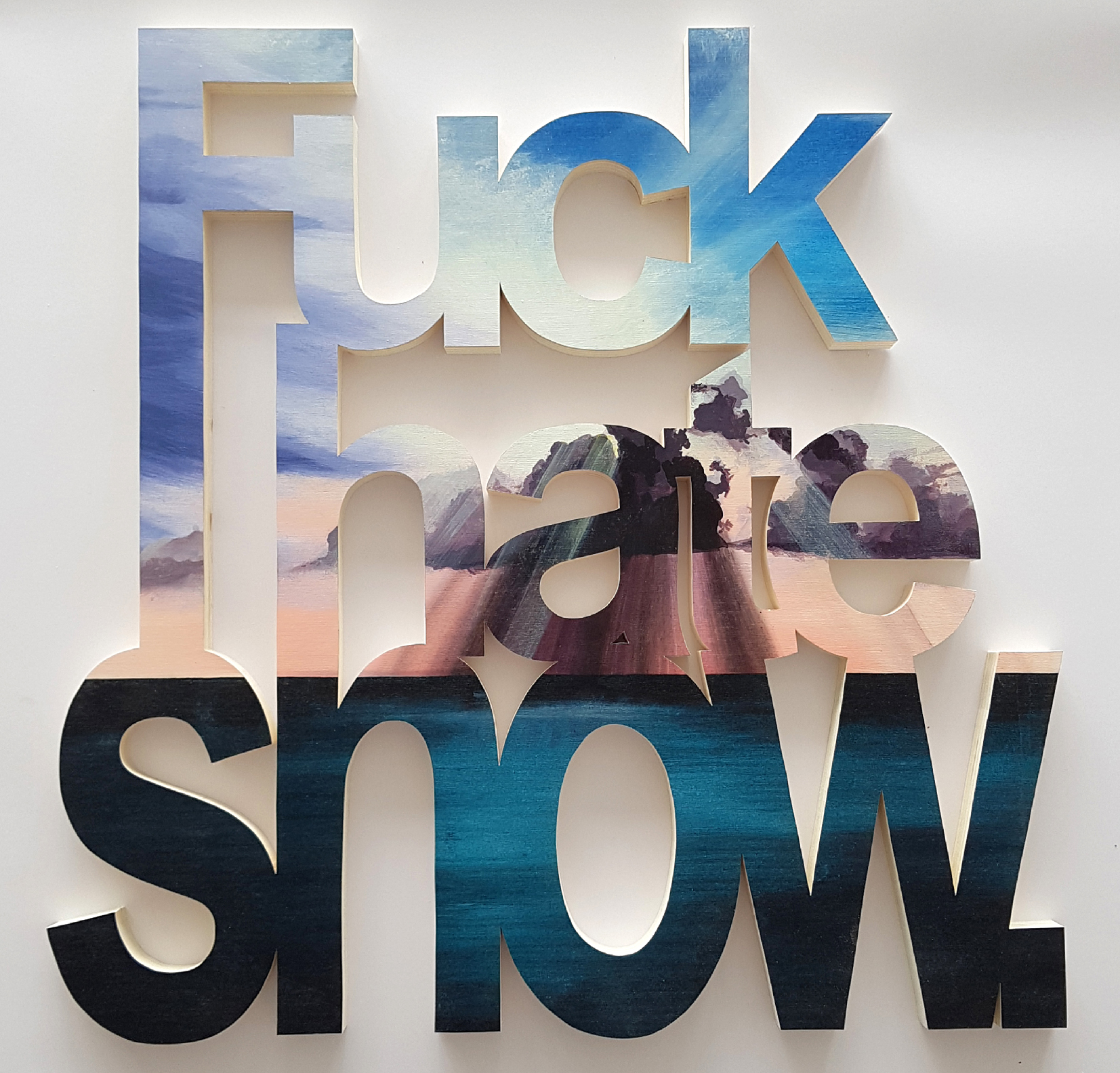 Fuck I hate snow In #NOT on Front Page, Niels Post • from the collaboration with Niels Post title: Fuck I hate snow size: 50 *47 cm material: wood & paint